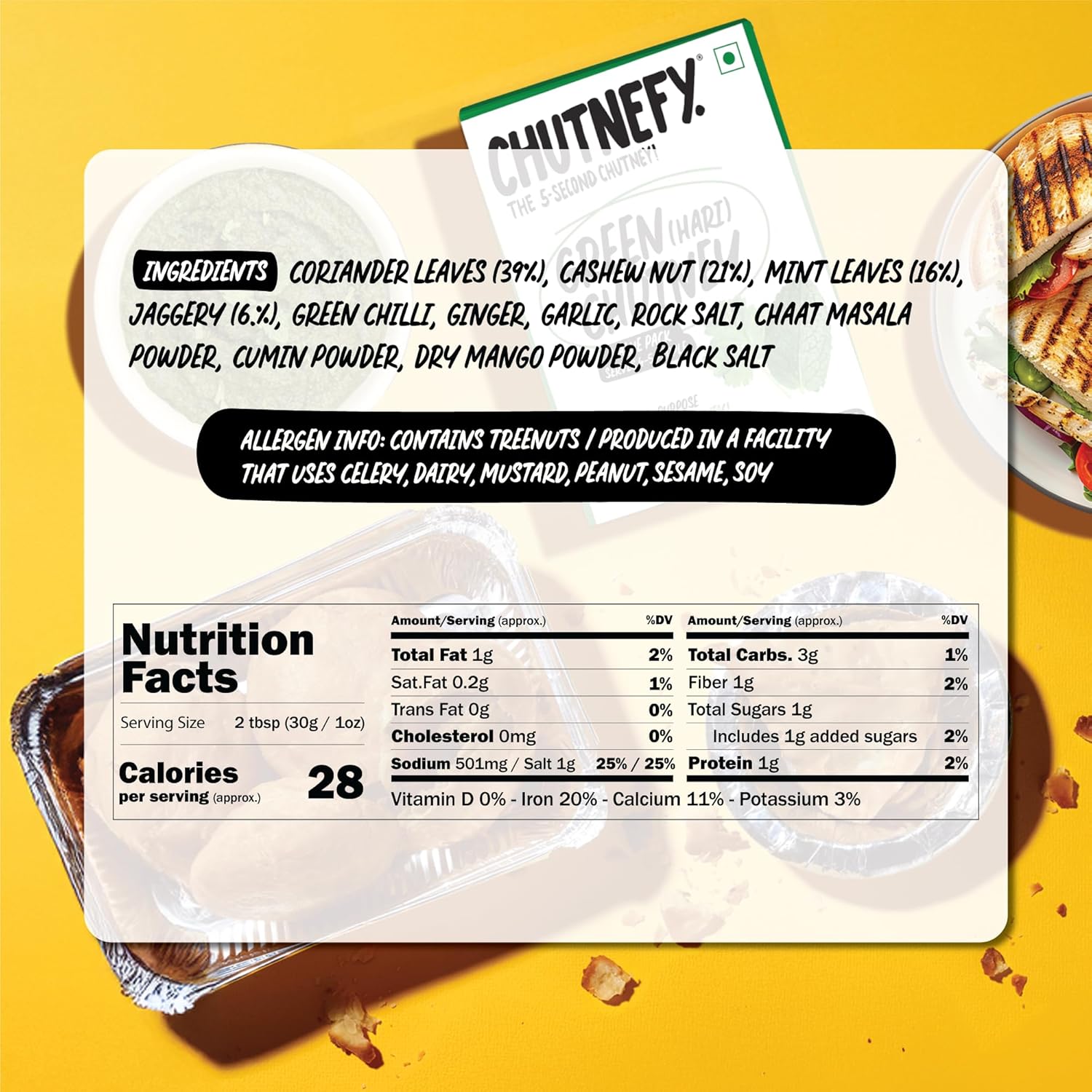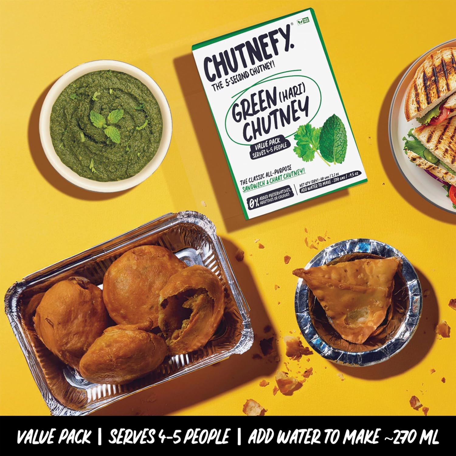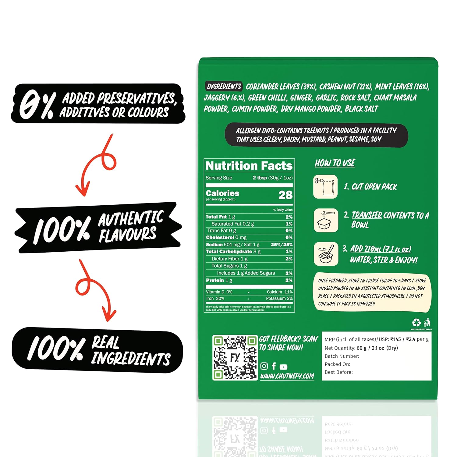 Each Chutnefy Chutney comes in an easy, convenient single-use pack to give you the flavour punch that'll hit the spot every single time, and gives you ~120ml of Chutney once mixed - easily enjoyed by 4-5!