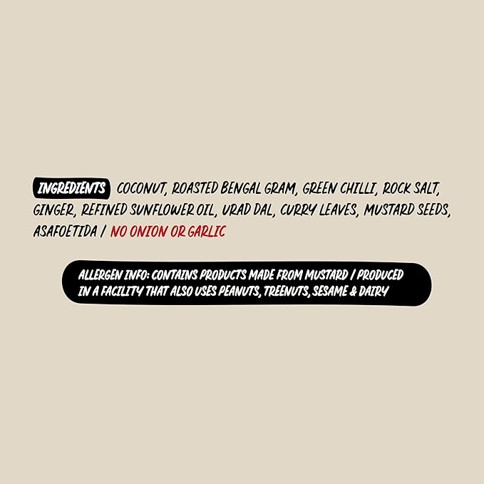Chutnefy's Home Style Coconut Chutney is a creamy, fragrant, and incredibly flavorful condiment that starts with the essence of our beloved coconut. It's the perfect blend of fresh coconut, roasted bengal gram, a hint of spiciness from green chilies, the earthy aroma of curry leaves, and just the right amount of salt. When all these ingredients come together, it's a harmonious symphony of tastes that we all know and love.